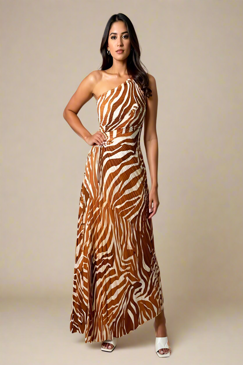 Træd ind i sommerens elegance med Alva – en iøjnefaldende kjole med zebramønster, plisseret stof og et flatterende one-shoulder snit. Den diskrete åbning i siden tilføjer et strejf af modernitet og sensualitet, mens det lette materiale sikrer komfort hele dagen. Perfekt til særlige lejligheder, ferier eller som en sofistikeret hverdagsstatement. Style den med sandaler eller hæle for et fuldendt look.